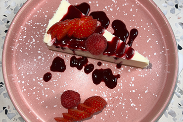 Le Cheese Cake de Bloomy, agrémenté d'un coulis de framboise. Une tentation sucrée à ne pas manquer.