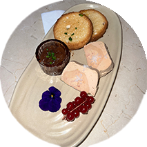 Une délicate préparation de foie gras maison, servie avec un chutney de figue onctueux et des toasts croustillants.